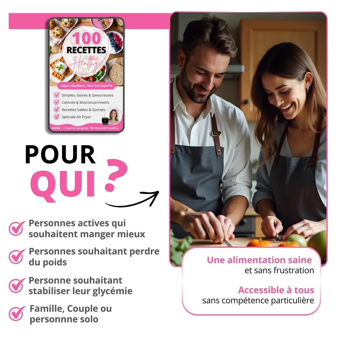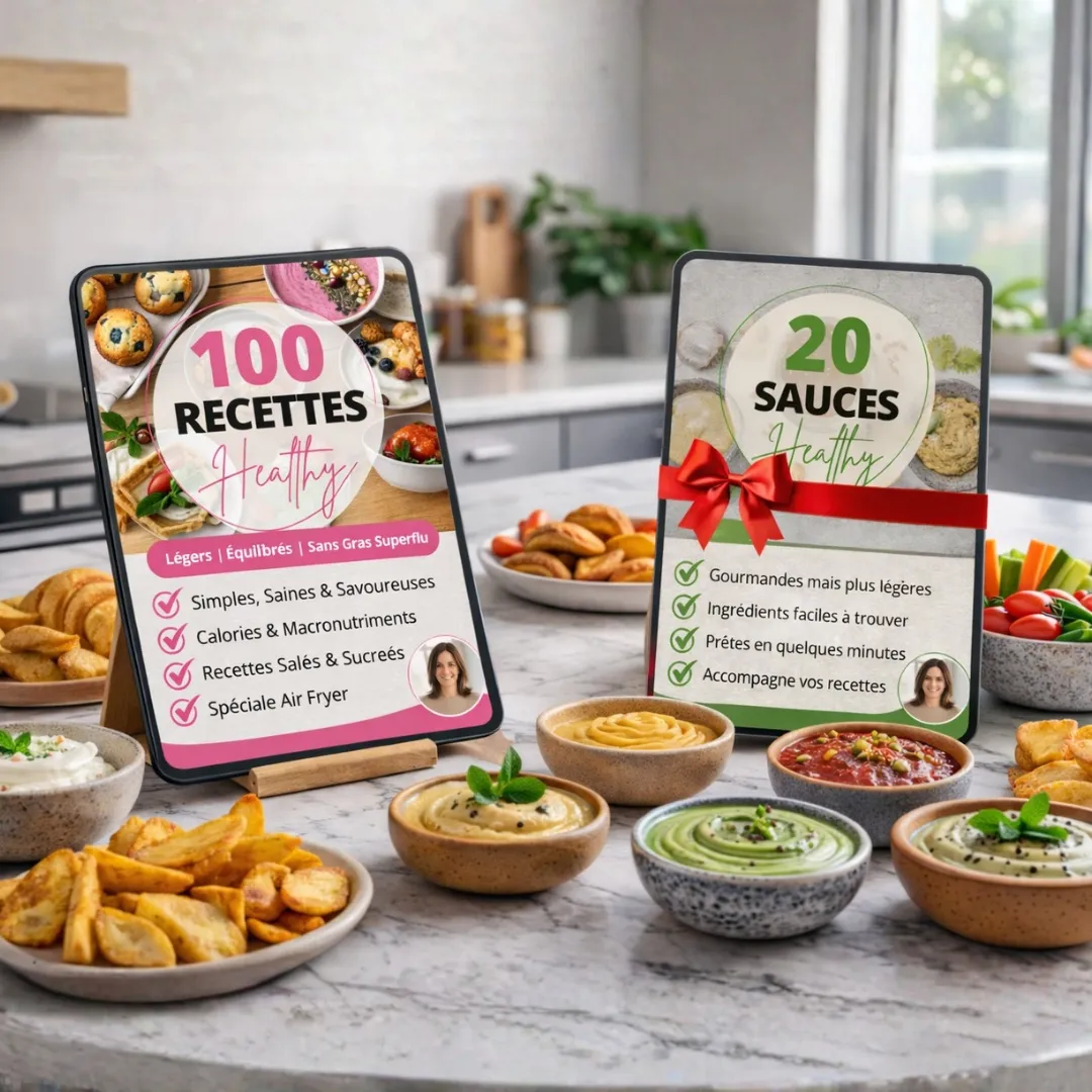 Pour rendre vos plats encore plus gourmands, vous recevez également un ebook bonus exclusif : 20 sauces healthy parfaitement adaptées pour accompagner vos recettes à l’Air Fryer.
