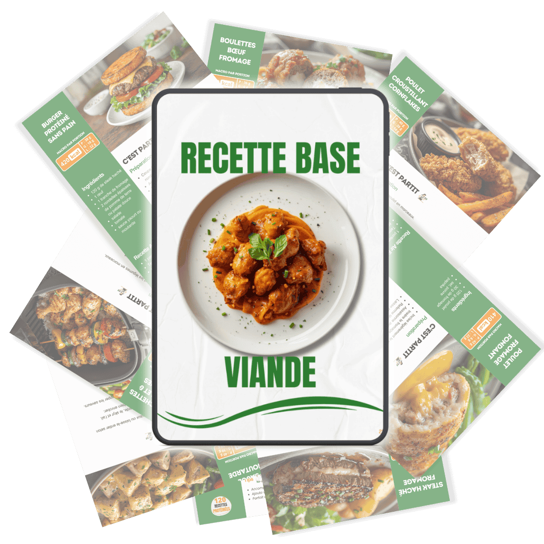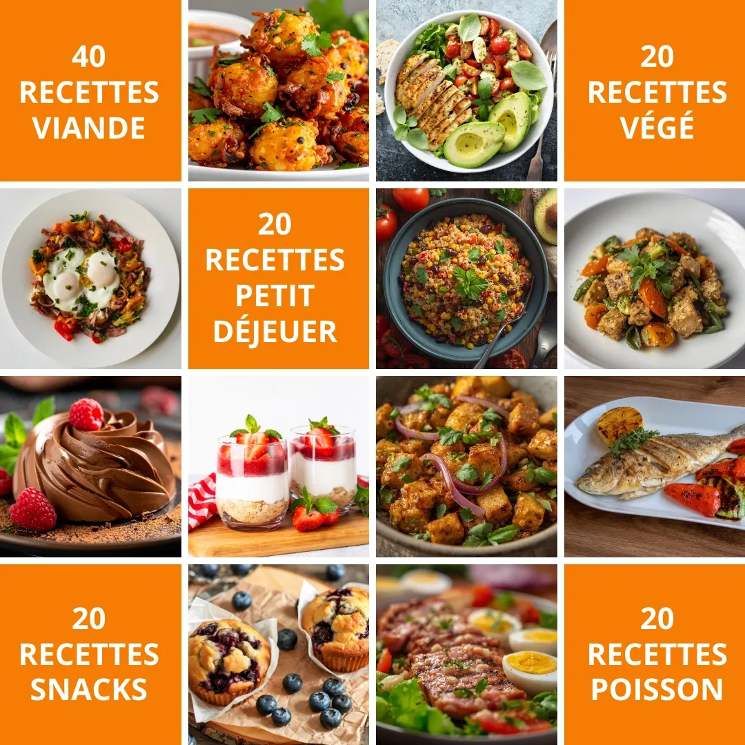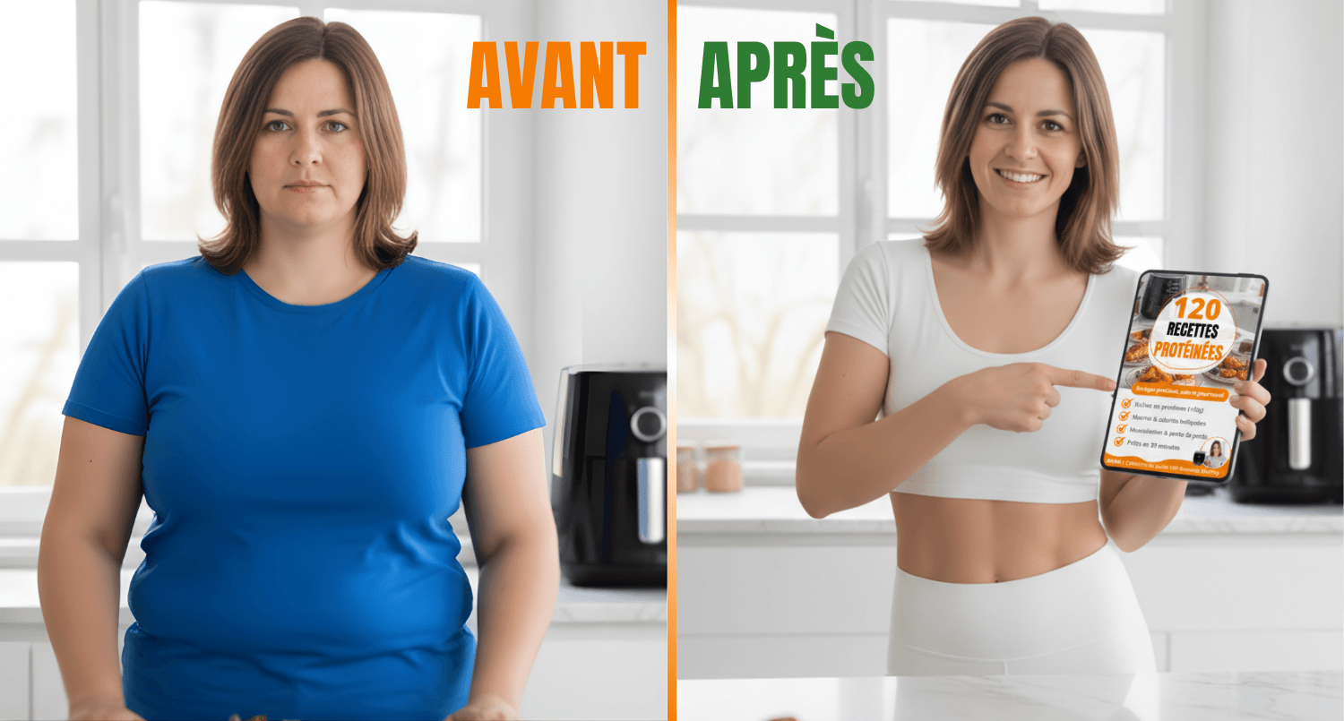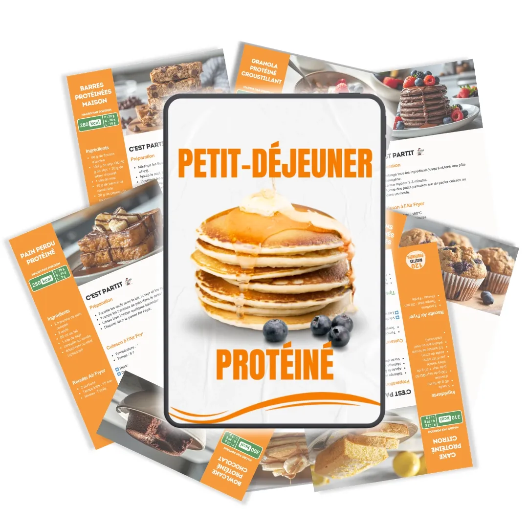 Aujourd’hui, j’ai décidé de partager ces recettes dans l'ebook 120 Recettes Protéinées à l’Air Fryer, spécialement conçues pour vous aider à :