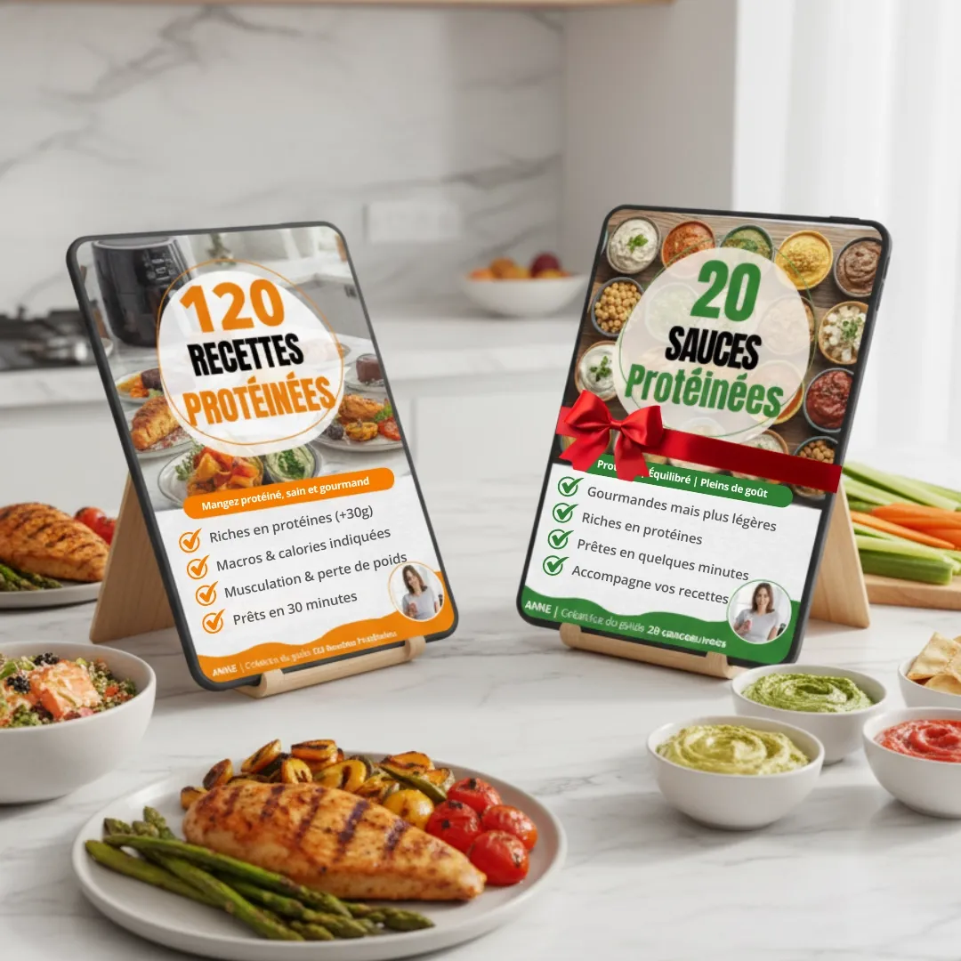 Oui, le bonus est entièrement offert avec votre achat. En commandant l’ebook 120 Recettes Protéinées à l’Air Fryer, vous recevez également un second ebook contenant 20 sauces protéinées pour accompagner parfaitement vos plats.